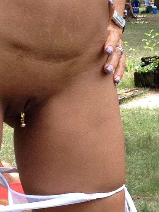 Very sexy Asian MILF who was obviously having a very good time showing herself off at NAP this year. Sorry, bashers, she was enjoying herself; her husband was loving her exhibitionism; their friends were loving it; and all the guys and girls gathered around watching and photographing were loving it, too. So what's with the negativity? If you don't like it move on. I think she's a very sexy MILF, and somebody I'd love to think was working in the next office, or at City Hall, or at the grocery store, demure on the outside, but with pierced nipples above and pierced labia below and sexy skimpy thong underwear, all hidden but knowing it's there.